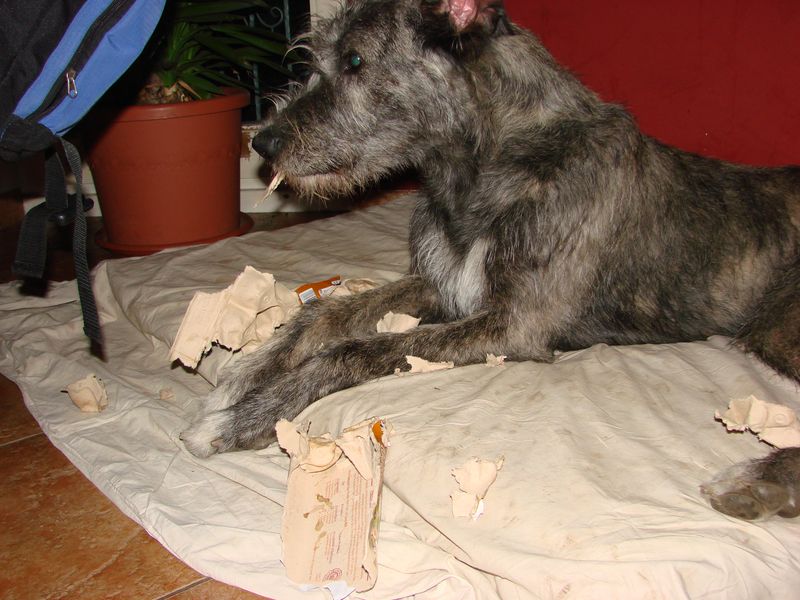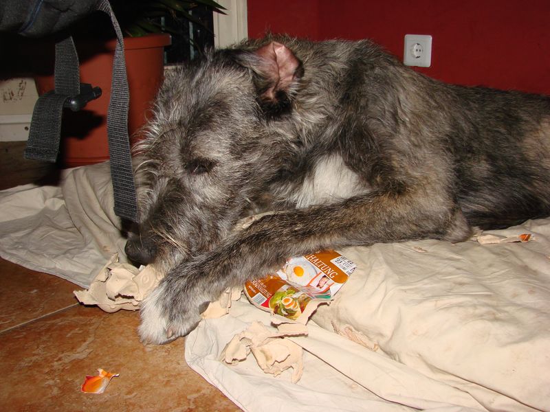 Dabei ist mir nicht bewusst das ich etwas falsch gemacht hätte. Wenn mir langweilig ist muss ich mich doch beschäftigen. Meine Frauchens sitzen nämlich oft stundenlang zusammen und labern über uns Hunde. Mir ist das total zu öde, also... beschäftige ich mich. Beim letzten mal fand ich den vollen Papierkorb. Mann das war ein Spaß. Hin und her, je kleiner desto besser