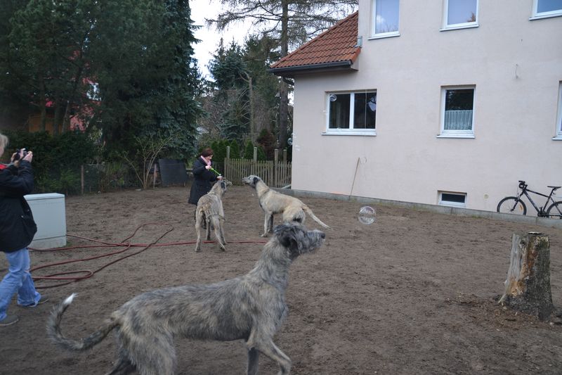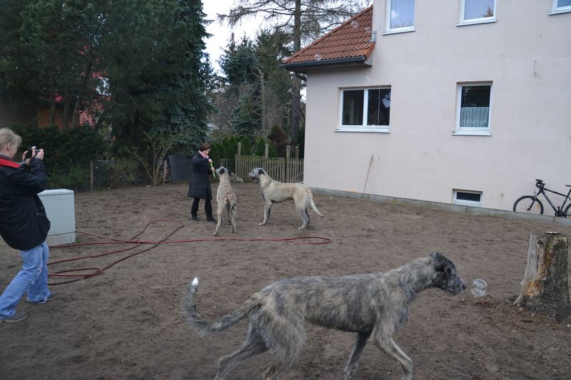 Syrah war läufig, zum Glück hat sie nicht kapiert, was man da eigentlich macht. Sie hat einen Rüden getroffen, mit dem sie auch sonst spielt, das hat gut geklappt, Gary (wie die Schnecke bei Spongebob, aber der Gary), wußte auch nicht so genau, wo man eigentlich aufsteigt, hats von vorne bis hinten probiert. Als er hinten war, hat sein Cheffe eingegriffen, nicht daß er noch Alimente zahlen muß.