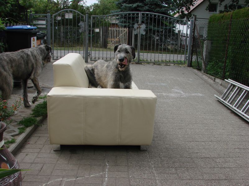 oder sie besteht voll dreist auf die neue Couch von Frauchens. Die Couch stand noch keine 5 Minuten auf unserer Auffahrt. Und dann das.....