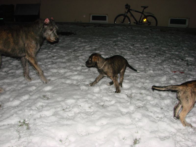 Meine Frauchen haben uns ja sehr oft mit den jungen Dingern in den Garten gelassen. Ist allerdings voll öde mit den kleinen im Garten wenn Frauchens dabei sind. Immer hieß es Kaschi pass auf, die sind noch so klein, toben könnt ihr später wenn die kleinen Drinn sind u.s.w...... Boah dabei sind die kleinen doch nicht aus Zucker. Ich habe einfach mal vor den kleinen eine Spielaufforderung gemacht und ein paar davon sind wirklich darauf eingegangen. Also Lernstunde eröffnet. Recht rum, links rum, vor und zurück war das ein Spaß, aber huch was ist denn das ???? warum liegen die denn im Schnee???? Hm..... scheinen einfach umgekollert zu sein. Na macht nichts, habe mal geschaut warum die kleinen da liegen, danach haben wir weiter gespielt.