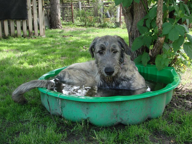 Hält allerdings nicht lange an. Sie geht nach dem spielen einfach in unsere große trinkwanne oder rennt unterm rasensprenger rum. Danach hat sie sich schön abgekühlt und macht weiter.