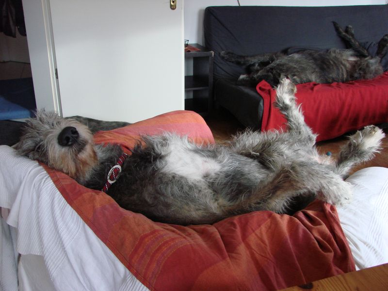 Frauchens haben unseren Bruder Moxley besucht und wir, also ich und Annabell durften mit. Also mein Bruder hat mich ja nicht so wirklich interessiert. Aber den Garten, die Wohnung und das Frühstück fand ich toll. Da können wir gern öfter hingehen.