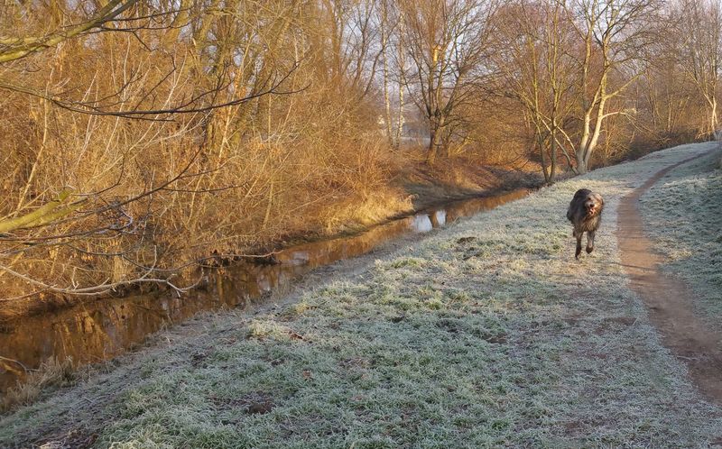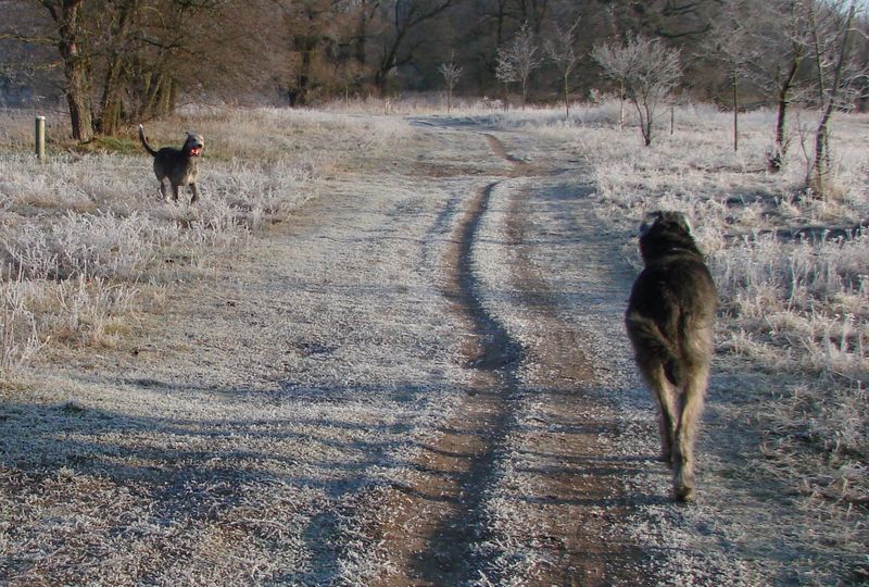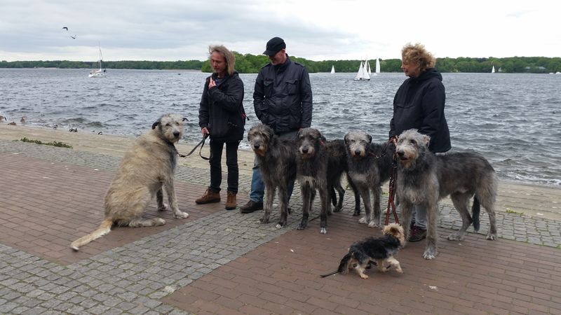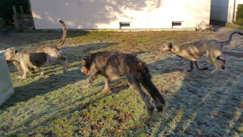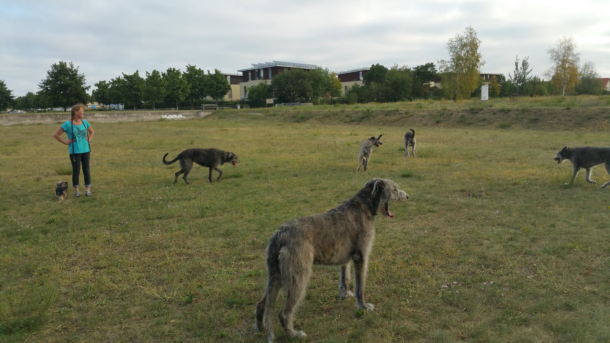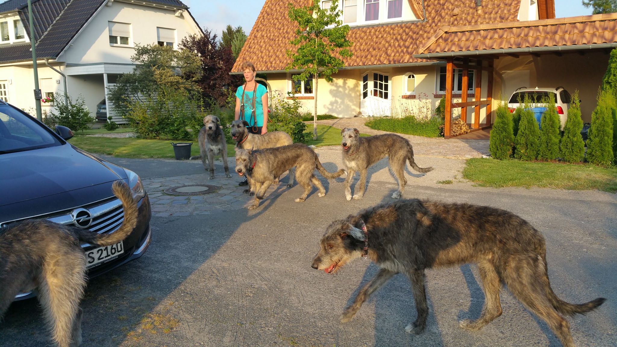 Als erstes hatten wir unseren Frühspaziergang wieder alles zusammen gemacht. Wir Wölfe und unsere Frauchens. Cool :-)