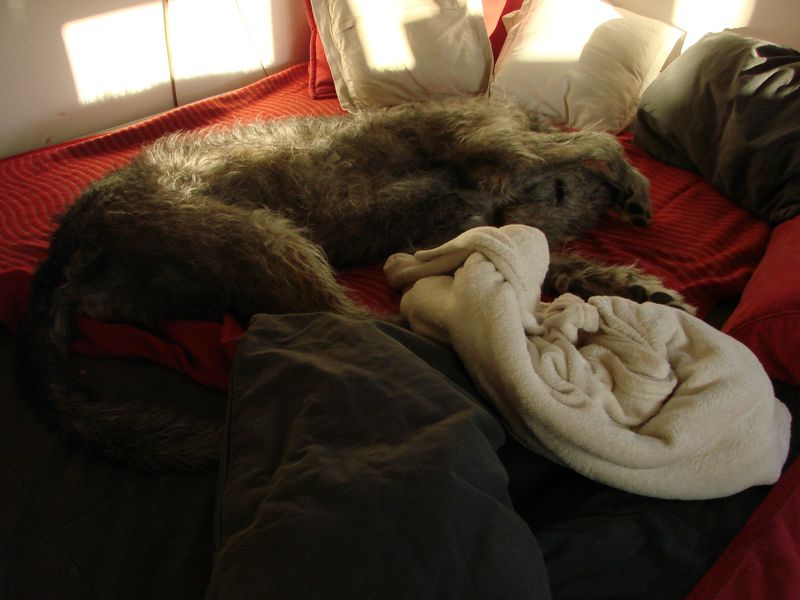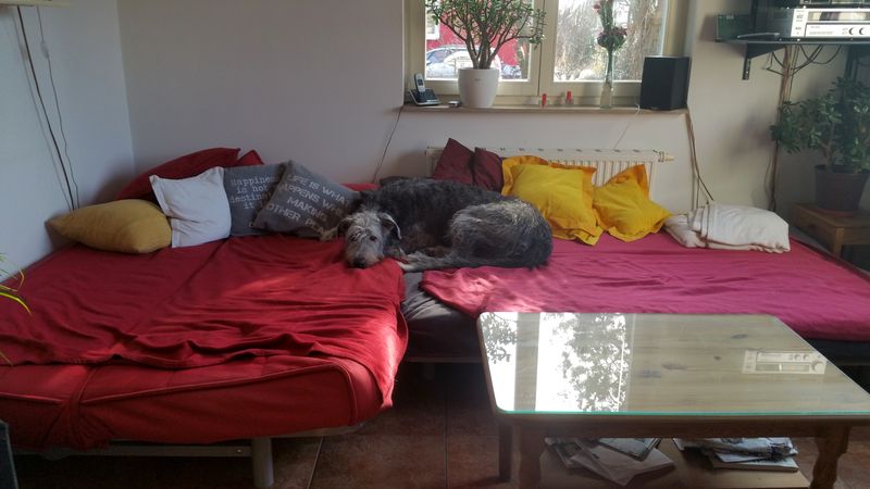 Am Sonntag hatten meine Frauchen ja wieder verrückte Sachen angestellt. Gleich ganz früh ist Frauchen Tina mit Opa und Marcel weggefahren um mit einer Couch wieder zu kommen. Eine Couch????? Schon wieder ??? Wieviele denn noch!!!! Wir haben doch gar nichts kaputt gemacht. Ich war völlig ratlos.... Dann haben die beiden auch noch angefangen das Wohnzimmer umzuräumen. * Hilfe * Aber dann aufeinmal war alles fertig und es sah richtig gut aus und bequem war es auch noch. Da habe ich beschlossen das jetzt alles meins ist. Sollen die anderen doch sehen wo sie in Zukunft schlafen.
