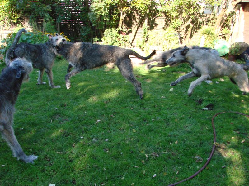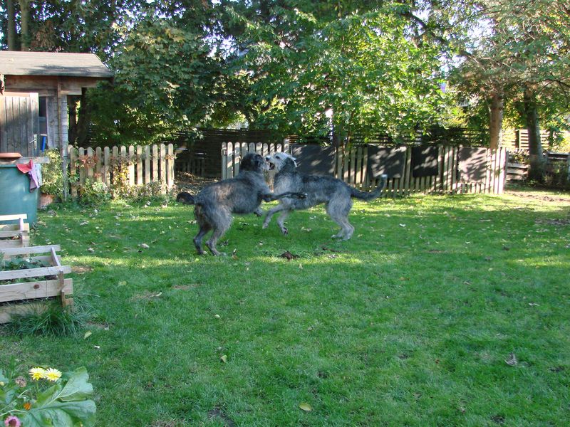 Zum Nachmittag sind wir alle in den Garten maschiert und haben uns mal eben ein bisschen ausgetobt. Ich muss ja sagen, die alte Dame Quini hat es mit ihren fast sieben Jahren noch richtig drauf. Mit uns anderen fünf hat sie es aufgenommen * Kopfschüttel * Aber sie hat es geschafft.
